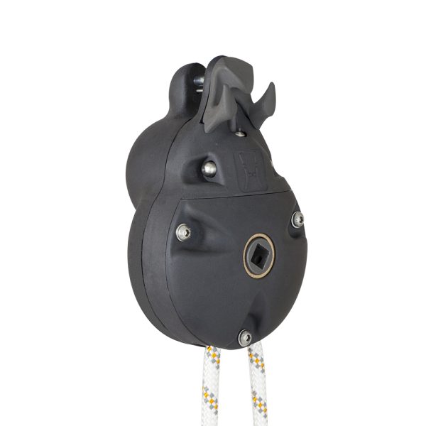 The ROTOR can also lift in either direction using the ratchet handle supplied. This enables multiple evacuees to use alternate rope ends. With the locking mechanism engaged the load is held if the handle is released.